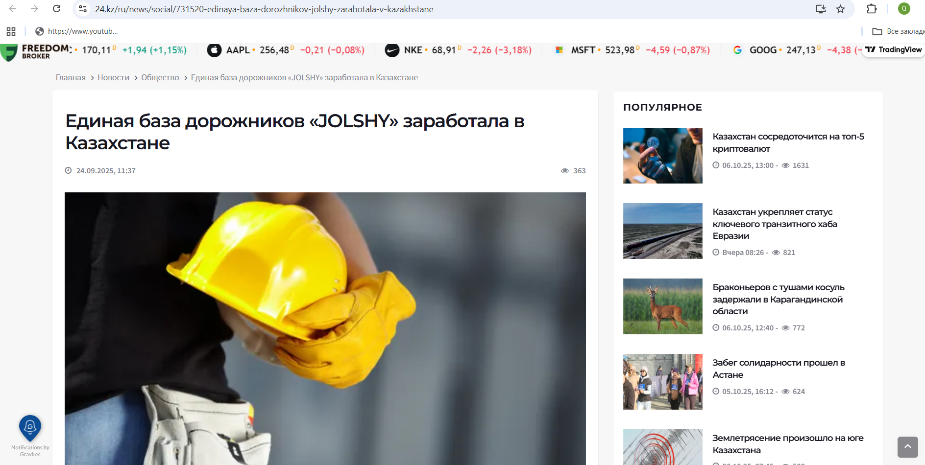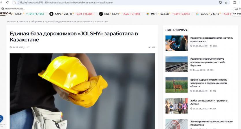 Единая база дорожников «JOLSHY» заработала в Казахстане