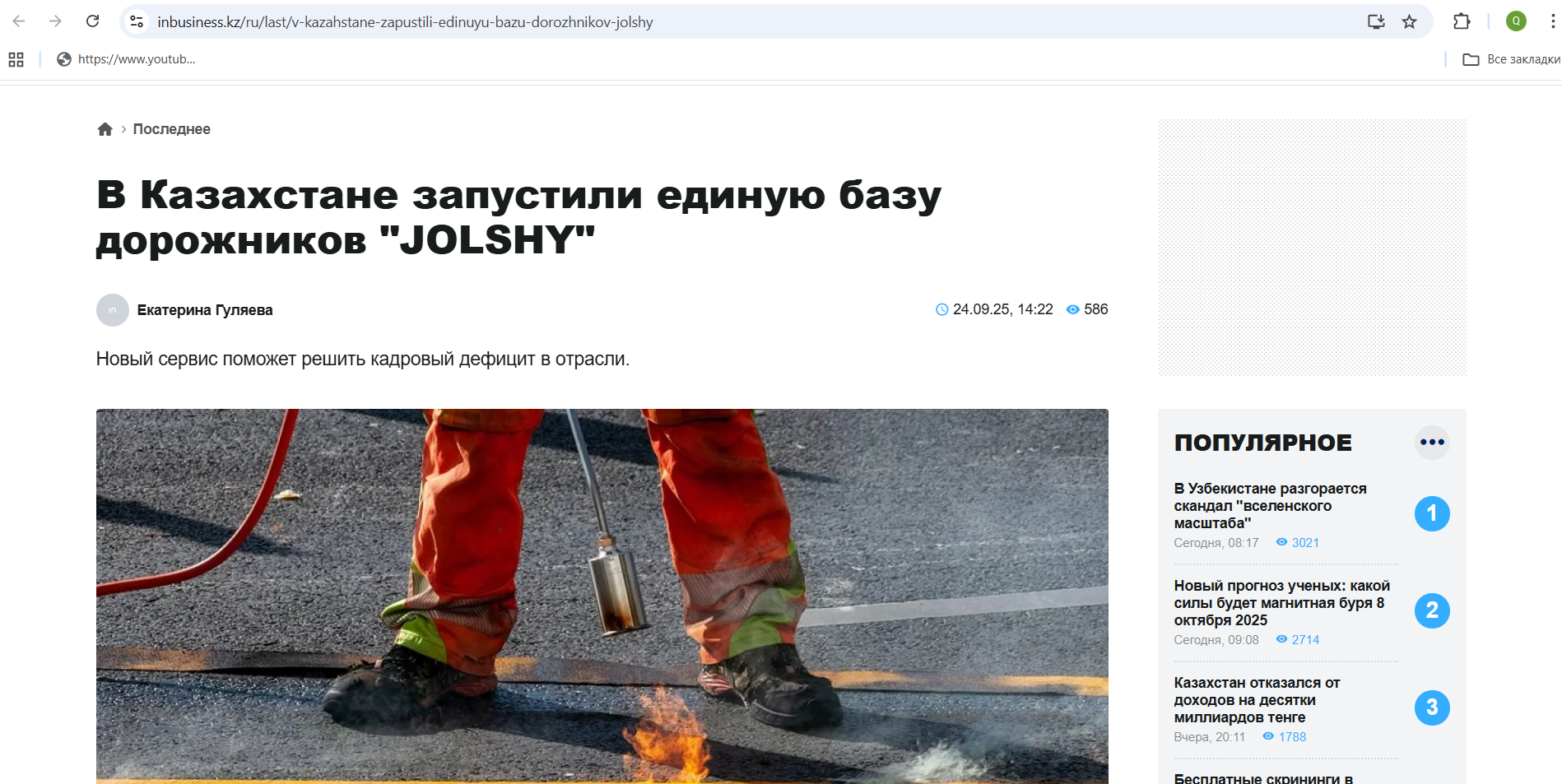 В Казахстане запустили единую базу дорожников "JOLSHY"